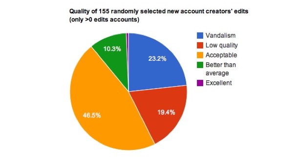 Un pequeño estudio realizado por el personal de Wikipedia encontró que los nuevos editores se están inscribiendo y haciendo las modificaciones en el sitio a un ritmo mucho mayor de lo que era hace años. Una ligera mayoría de sus primeros cambios son hoy considerados aceptables o mejor. El númeroSeguir leyendo