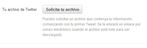 Para descargar tu archivo de tuits solo debes ir a la tuerca que se encuentra en la parte superior derecha de tu cuenta, Configuración, Cuenta y al final encontrarás el botón «Solicita tu archivo».