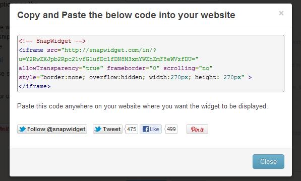 5- Procede a insertar en tu sitio web. Si usas el servicio Blogger solo hay que agregar un gadget HTML/Javascript y pegar el código. En Tumblr puedes colocar la aplicación en el espacio de la información personal.