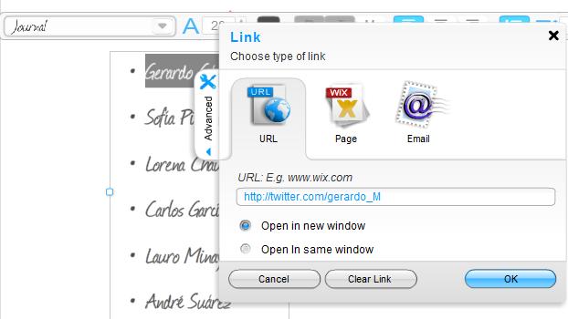Modificar las características del texto en Wix es casi igual a hacerlo en Word. Aparece una caja con distintas opciones y podemos ir escogiendo:
