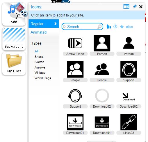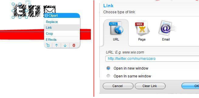 10. Wix ofrece una posibilidad interesante: iconos de Facebook, Twitter y otros que nos pueden servir para vincular a los usuarios a determinadas cuentas. Estos iconos se encuentran en Add-ClipArt-Icons:
