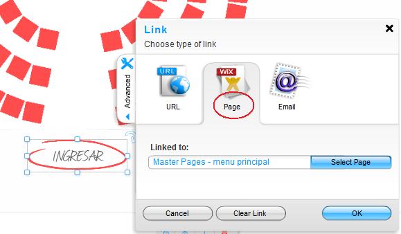 Para linkear el botón al Master Page 2, hacemos click en ‘Link’ y seleccionamos ‘Page’:
