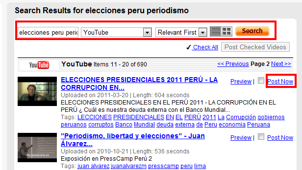 Magnify es un sitio para crear un canal con contenido seleccionado de YouTube, Vimeo, Google Videos y otros servicios. Puedes buscar el video o insertar la URL. Eso no es todo. También puedes grabar tu propio video o colgar imágenes.
