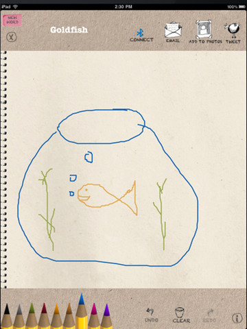 Tiene una colección de lápices bastante colorida para lo que desees hacer. Los dibujos se pueden guardar o compartir a través del email y Twitter.