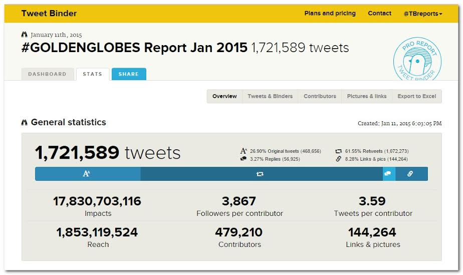 El equipo de Tweetbinder.com analizó la repercusión e impacto de algunos premiados de los Globos de Oro en Twitter y realizó una interesante infografía