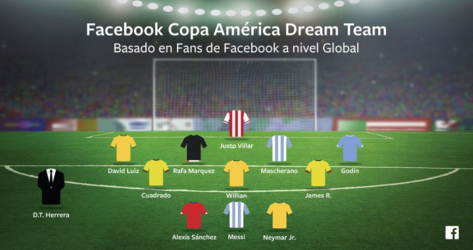 Si los 11 mejores futbolistas de la Copa América fueran elegidos en base a los «me gusta» de sus páginas oficiales y verificadas en Facebook, el resultado sería una selección colorida y variada de talentos de toda América Latina.