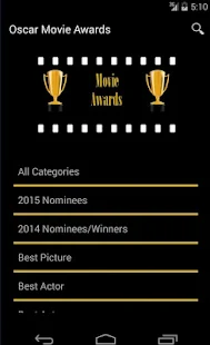 En tanto, Oscar Movie Awards ya tiene entre mil y 5 mil descargas en la tienda virtual de Android. La app tiene a los ganadores del Oscar desde 1929 hasta el 2014, y muestra a los nominados de este año.