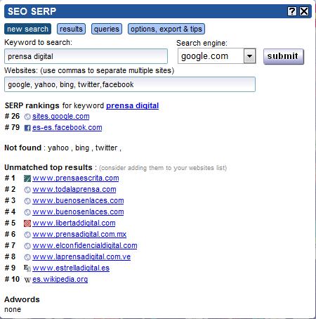 Si te interesa posicionar tu sitio web en buscadores de internet como Google, Yahoo!, Bing, así como en otras páginas, puedes probar la aplicación SEO SERP. Además, digitando palabras clave puedes saber, mediante un ranking,  quiénes son tus principales competidores y cómo va su tráfico en internet.