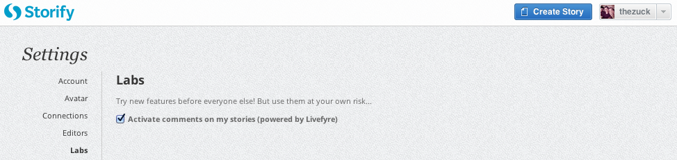 En esa pestaña debes activar el casillero «Activate comments on my stories (powered by Livefyre)». Al final de cada storify verás un cuadro de texto para comentarios: