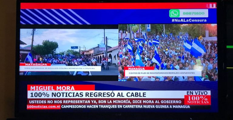 El canal privado 100% Noticias de Nicaragua volvió a transmitir por su señal de cable, tras ser bloqueado por las autoridades al inicio de las manifestaciones cuando transmitía las protestas en vivo.Seguir leyendo