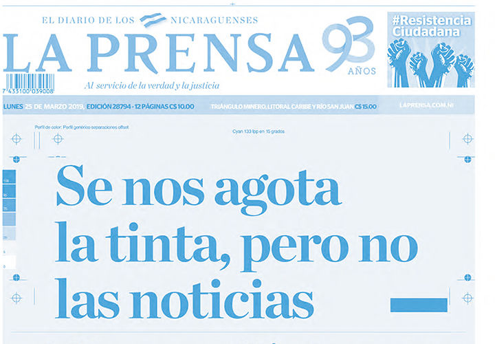 Conmovedora portada del diario La Prensa de Nicaragua: «Se nos agota la tinta pero no las noticias»
