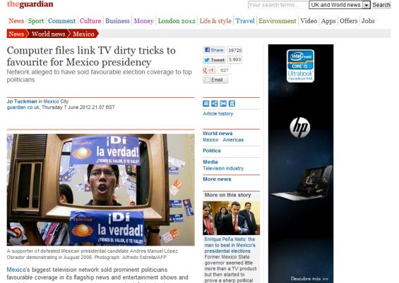El diario británico The Guardian no se disculpó hoy con Televisa, tal como lo había exigido la cadena, luego de que la acusara de vender su cobertura al candidato presidencial Enrique Peña Nieto, a fin de que llegue a la presidencia de México.