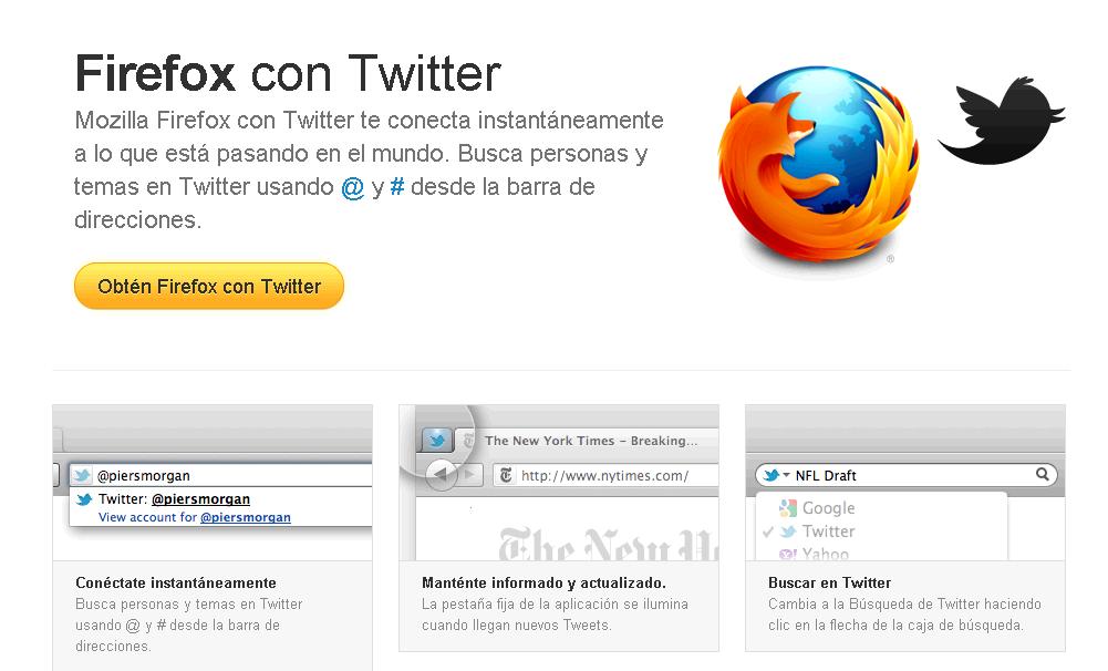 Además, Twitter lanza una versión modificada de Firefox que permite buscar en Twitter, directamente, desde la barra de direcciones.