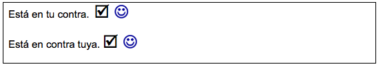 • Cuando empleamos ‘en contra de mí’, ‘en contra de ellos’, etc., es posible sustituirlo por el posesivo correspondiente, tanto antepuesto (en mi contra, en su contra, etc.) como pospuesto (en contra mía, en contra suya, etc.), ya que los sustantivos sí se combinan con posesivos: