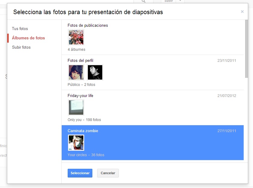 2. Presiona “crear” al costado de la acción. La ventana que se despliega es parecida a la de otros productos de Google. Desde allí elige las instantáneas que quieras o arrastra las que tengas en el escritorio.